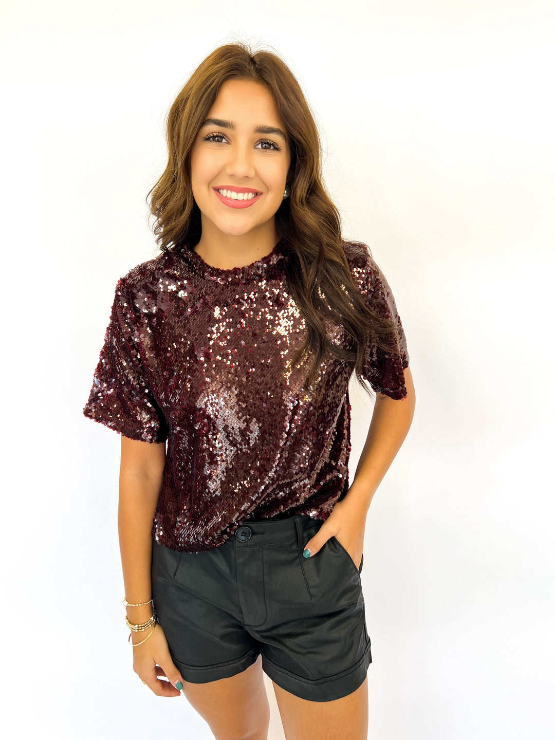 Burgundy Logan Sequin Top