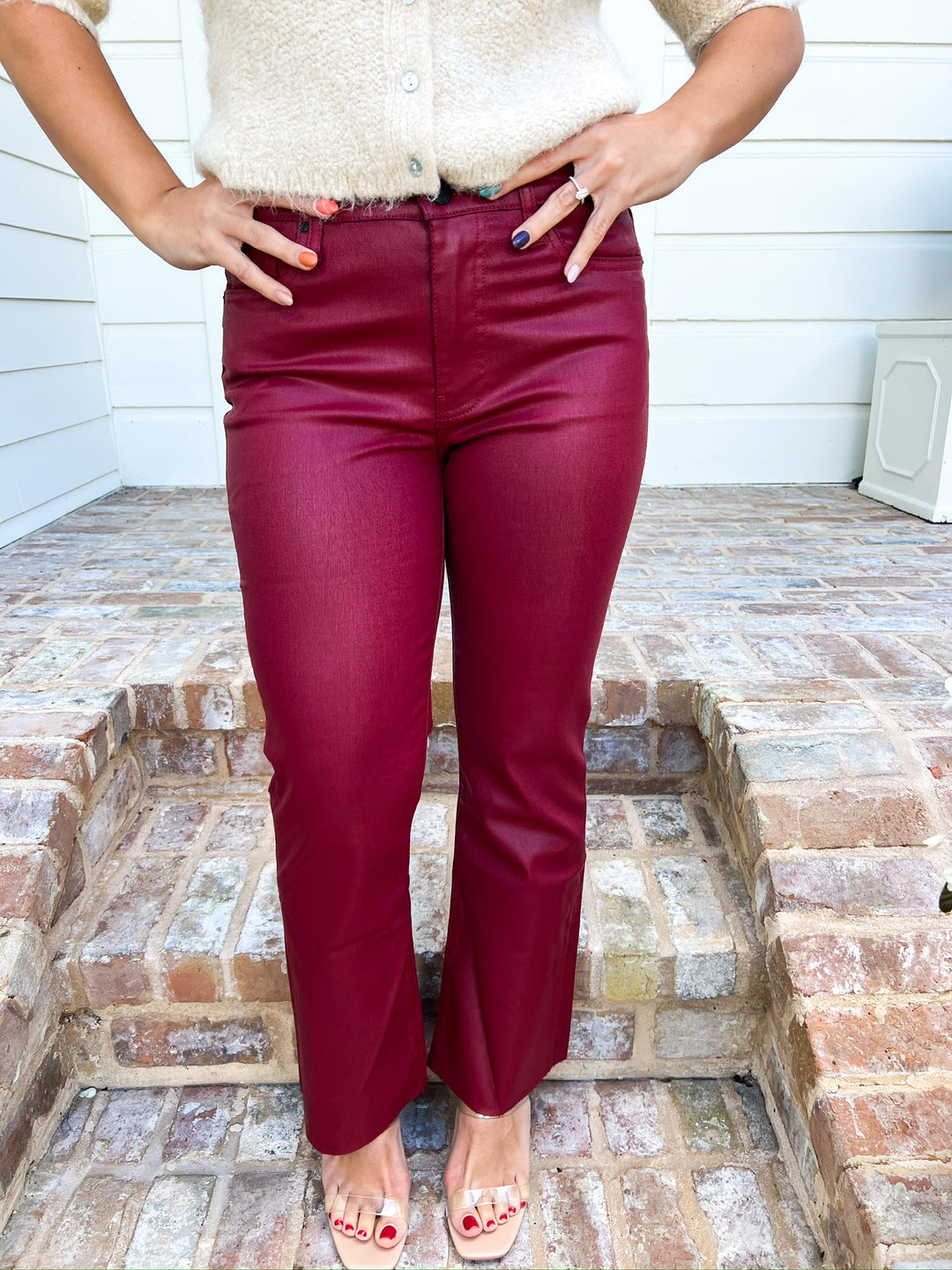 Red Coated Kelsey High Rise Ankle Flare