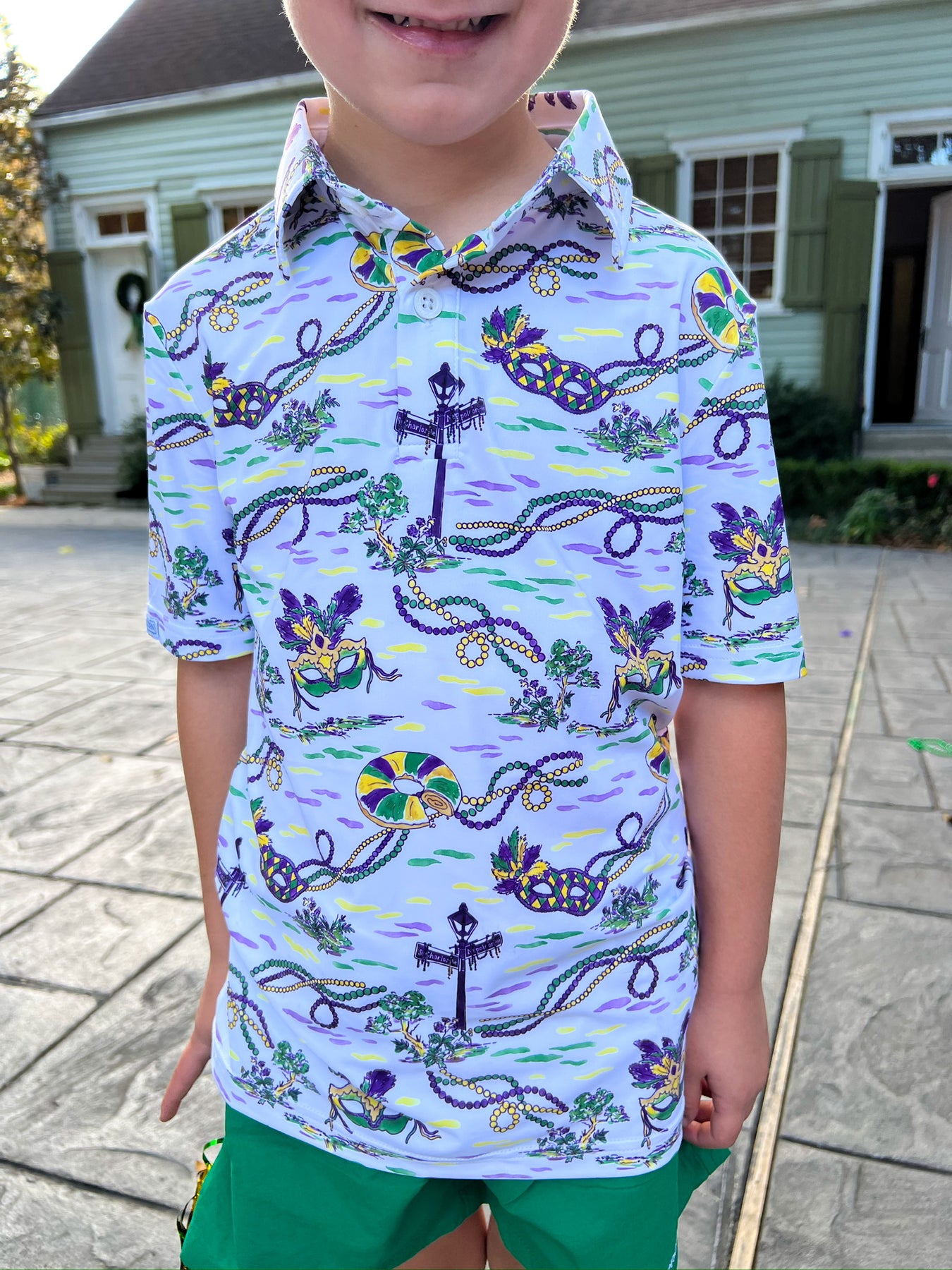 Mardi Gras Toile Little Teddy Polo