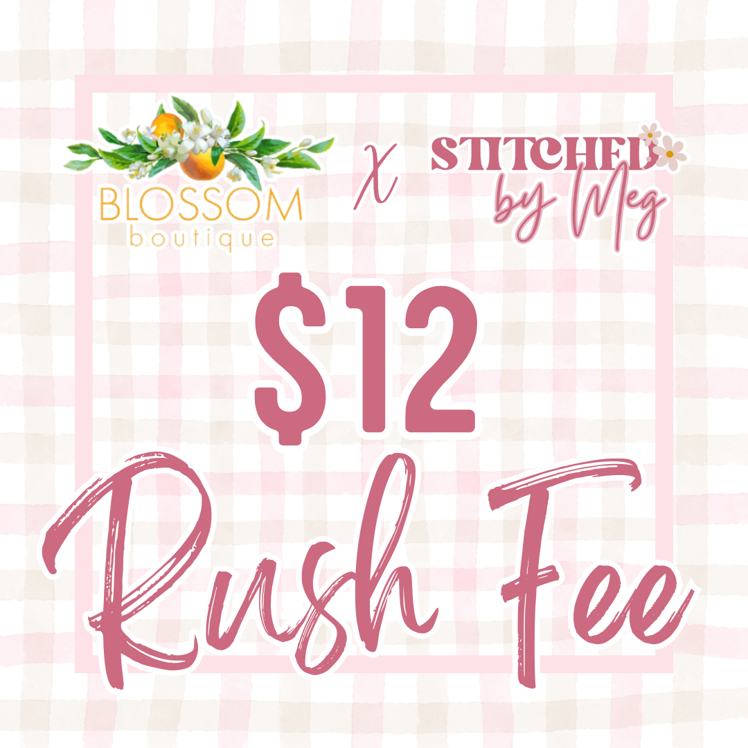If you need your items sooner, we do offer a $12 rush fee (3-5 business days) to make sure your items get to you before that time frame. If a rush fee is purchased and you would like your items shipped to you, you are also responsible for the expedited shipping. Expedited shipping will be offered at checkout. Local pick up is available for all embroidery orders as well.