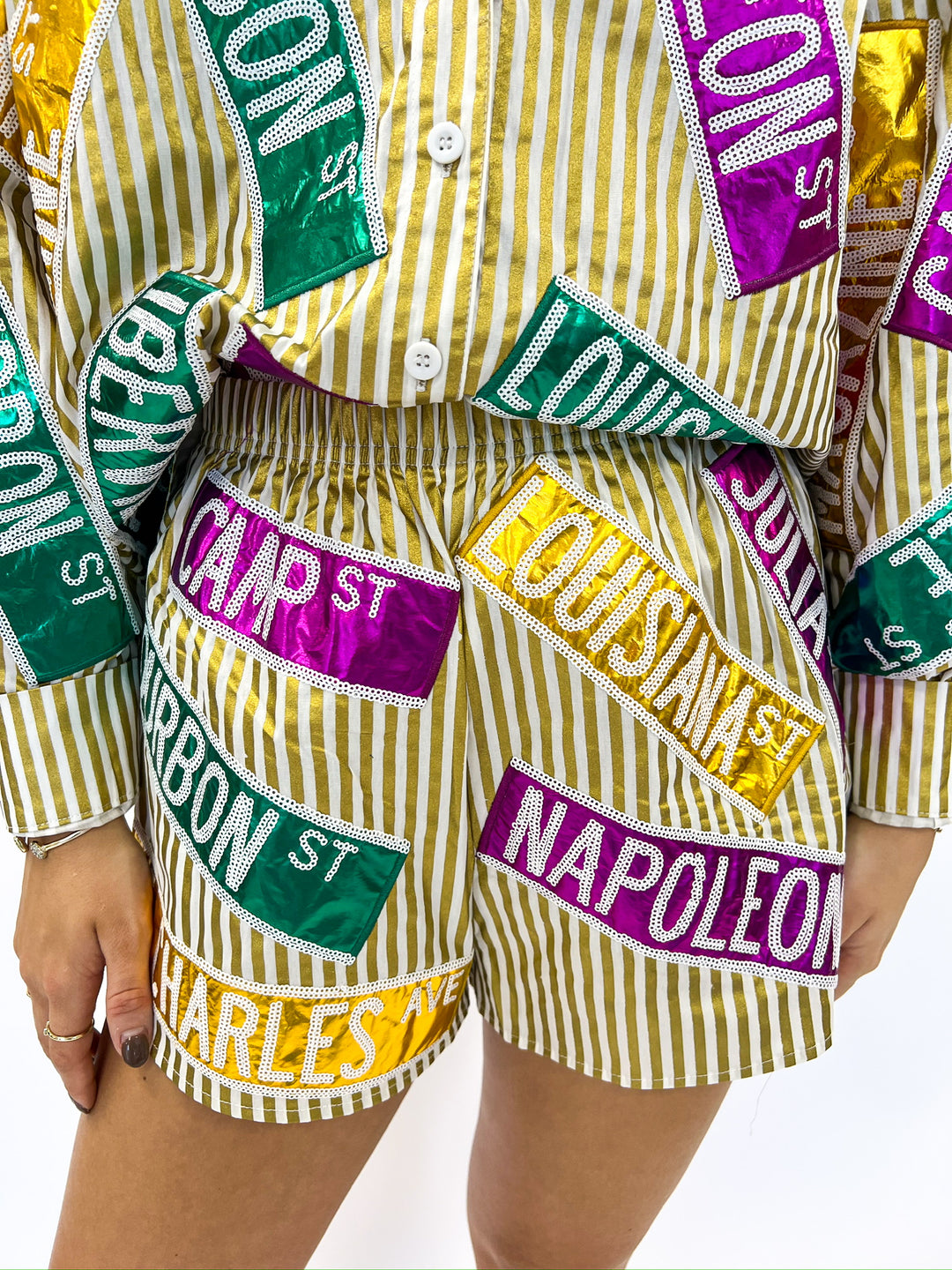Green Happy Mardi Gras Street Tile Sweatshirt