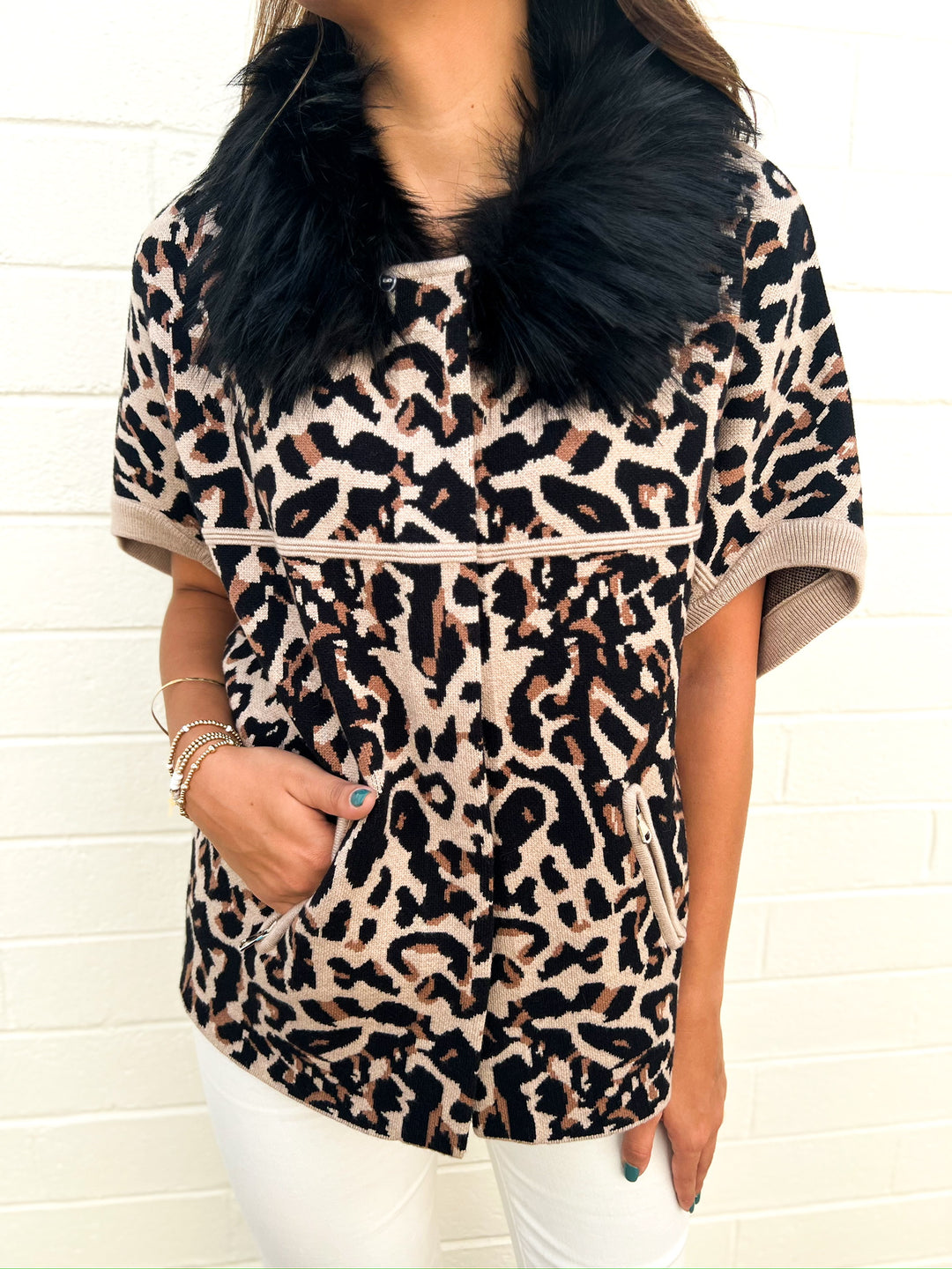 Leopard Fur Trim Cardigan